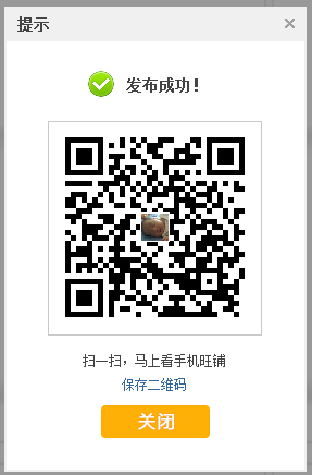 (1)保存二維碼:可下載手機旺鋪首頁二維碼到本地。