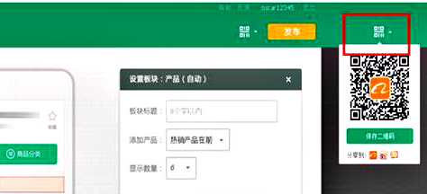 完成以上裝修操作后,點擊右上角發(fā)布按鈕,確認(rèn)后,將完成發(fā)布,且可保存這個頁面的二維碼,如圖