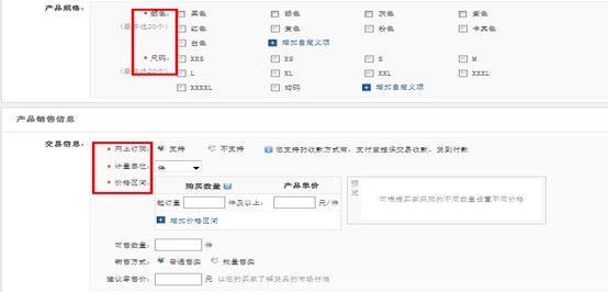 解決方案:產(chǎn)品發(fā)布時如果有必填項沒有填寫,造成產(chǎn)品不能發(fā)布。建議您確認(rèn)您發(fā)布產(chǎn)品表單的必填項是否都已經(jīng)有對勾,如有頁面錯誤的提示,請按照提示針對相應(yīng)內(nèi)容進行修正之后再提交;